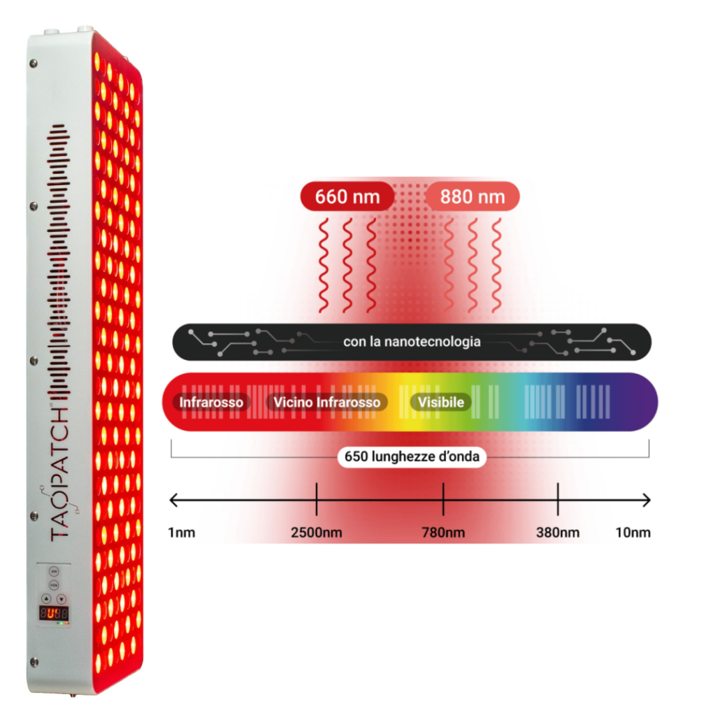 La fotobiomodulazione o red light theraphy rappresenta l’evoluzione della terapia laser LLLT, utilizzando componenti optoelettronici (LEDs) di varie lunghezze d’onda, dal rosso (630nm) all’infrarosso vicino (NIR) (880 nm). Questa tecnologia stimola specifici distretti cellulari per: