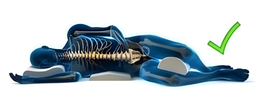 La posizione laterale può essere una delle posizioni migliori la postura nel sonno, ma solo in presenza di supporti. Soprattuto in casi in cui non si dispone del materasso e cuscino adatto a supportare la fisiologica lombare è meglio evitare di dormire sul lato o in posizione fetale. Queste posiziono possono restringere lo spazio tra le vertebre, peggiorando il dolore.