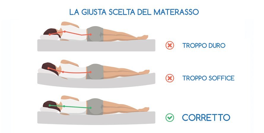 Un materasso che non offre supporto può causare un allineamento errato della colonna vertebrale, aumentando il dolore e peggiorando la postura. Scegliere il materasso corretto è importante per la qualità del sonno e per prevenire il peggioramento del dolore.